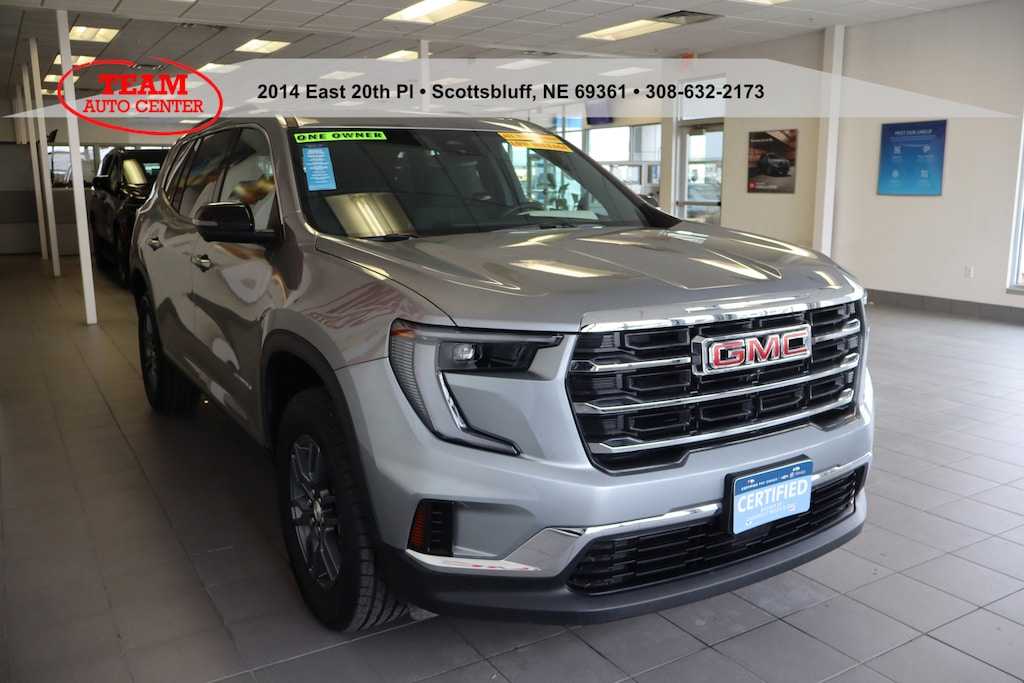 Sterling Metallic 2025 GMC Acadia Elevation Certified. CARFAX One-Owner. Apple CarPlay/Android Auto, Heated Driver and Front Passenger Seats, Preferred Equipment Group 4SD. .....One Low Price. Plain and Simple!