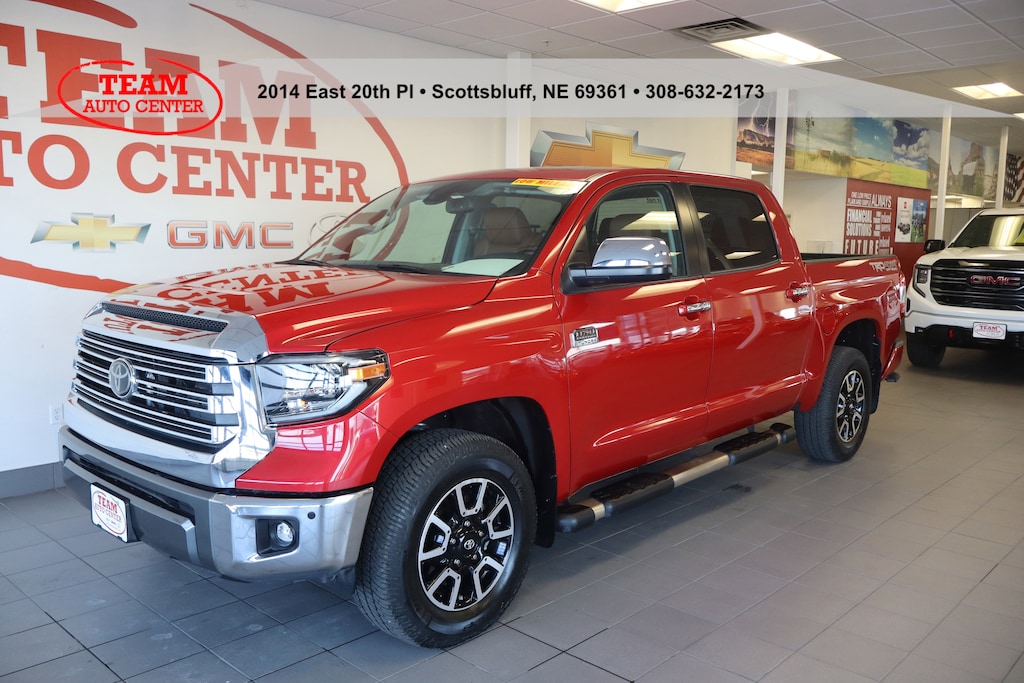 2020 Toyota Tundra 1794 Luxury, Power & Low Miles Available Now in Scottsbluff, NEExperience rugged capability and premium comfort with this Barcelona Red Metallic 2020 Toyota Tundra 1794 Edition. This locally traded truck comes with a Clean CARFAX and is 37,791 miles below market average!Key Features:i-Force 5.7L V8 Engine proven power and reliability1794 Grade Package unique western-inspired luxury trimLeather Seats for premium comfortApple CarPlay & Android Auto connectivityWestern Grade Package for added style and functionalityLOCAL TRADE and well-maintainedWhy Buy From TEAM Auto Center?Located in Scottsbluff, NE trusted local dealershipOne Low Price. Plain and Simple!Fast, hassle-free buying experience----- When we surveyed our customers, we found that over 75% do not like the traditional negotiating process that happens at most dealerships. So we decided to do a couple of things .....First: We put our VERY BEST PRICE on every vehicle 24/7......Second: None of our salespeople get paid a commission. They get paid the same whether you by a $2000 Car or a $50,000 car. ----- Every dealer knows what their lowest possible price is, they just hope you will pay more. Every dealer knows what your trade in is worth, they just hope you will take less. -----2020 Toyota Tundra 1794 4WD 6-Speed Automatic Electronic i-Force 5.7L V8 DOHC 32V LEV13/17 City/Highway MPG
